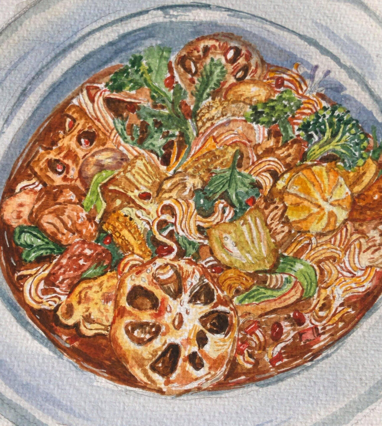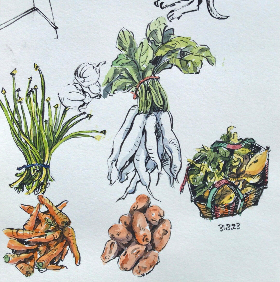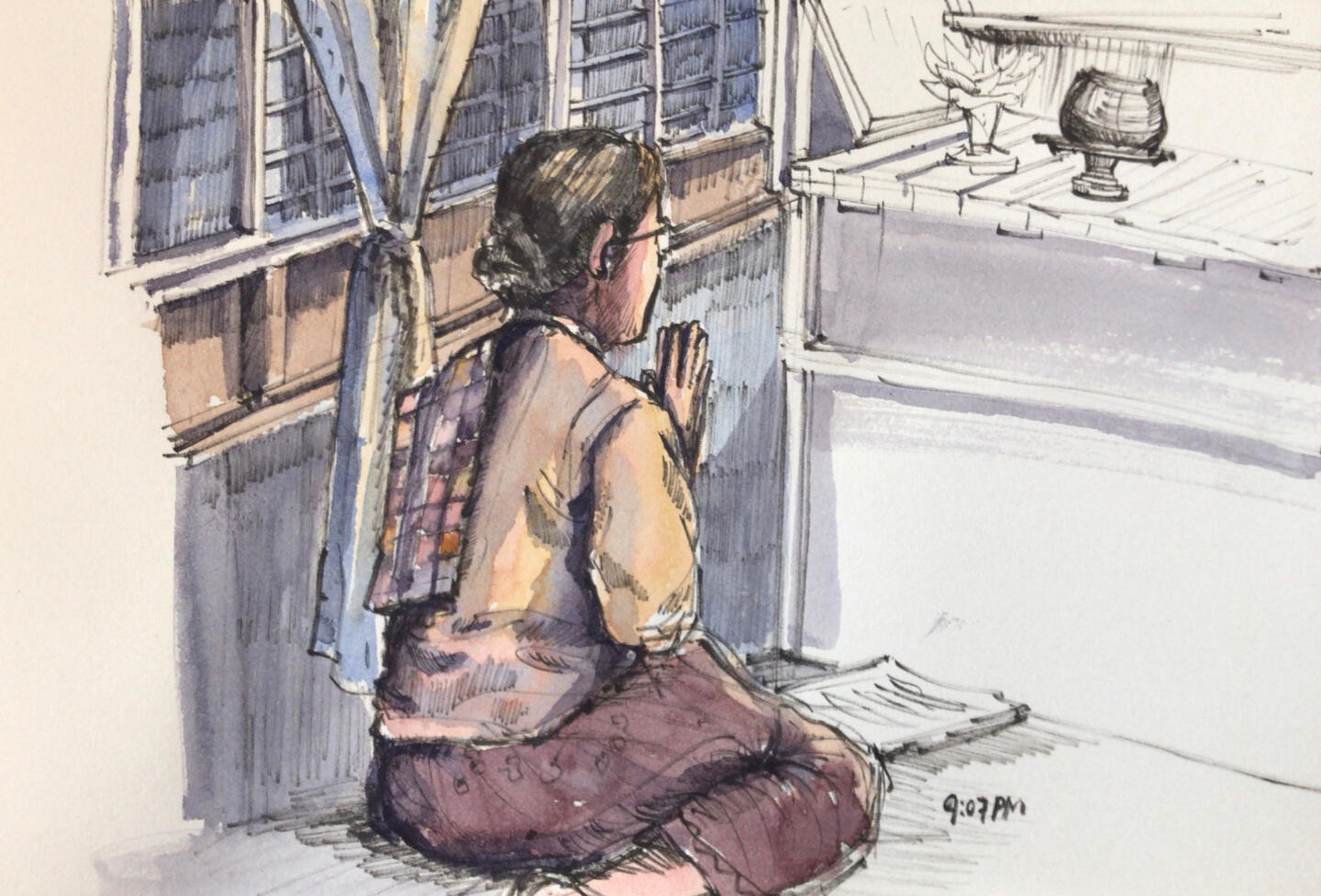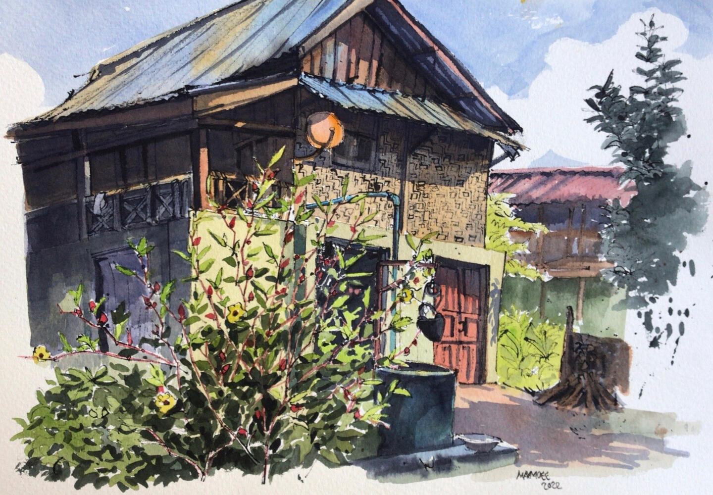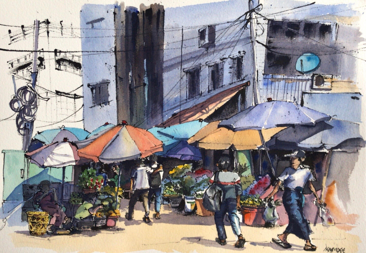 I enjoy doing urban sketch. Hustle and bustle, the hangings on the clotheslines, sunlight through the leaves,